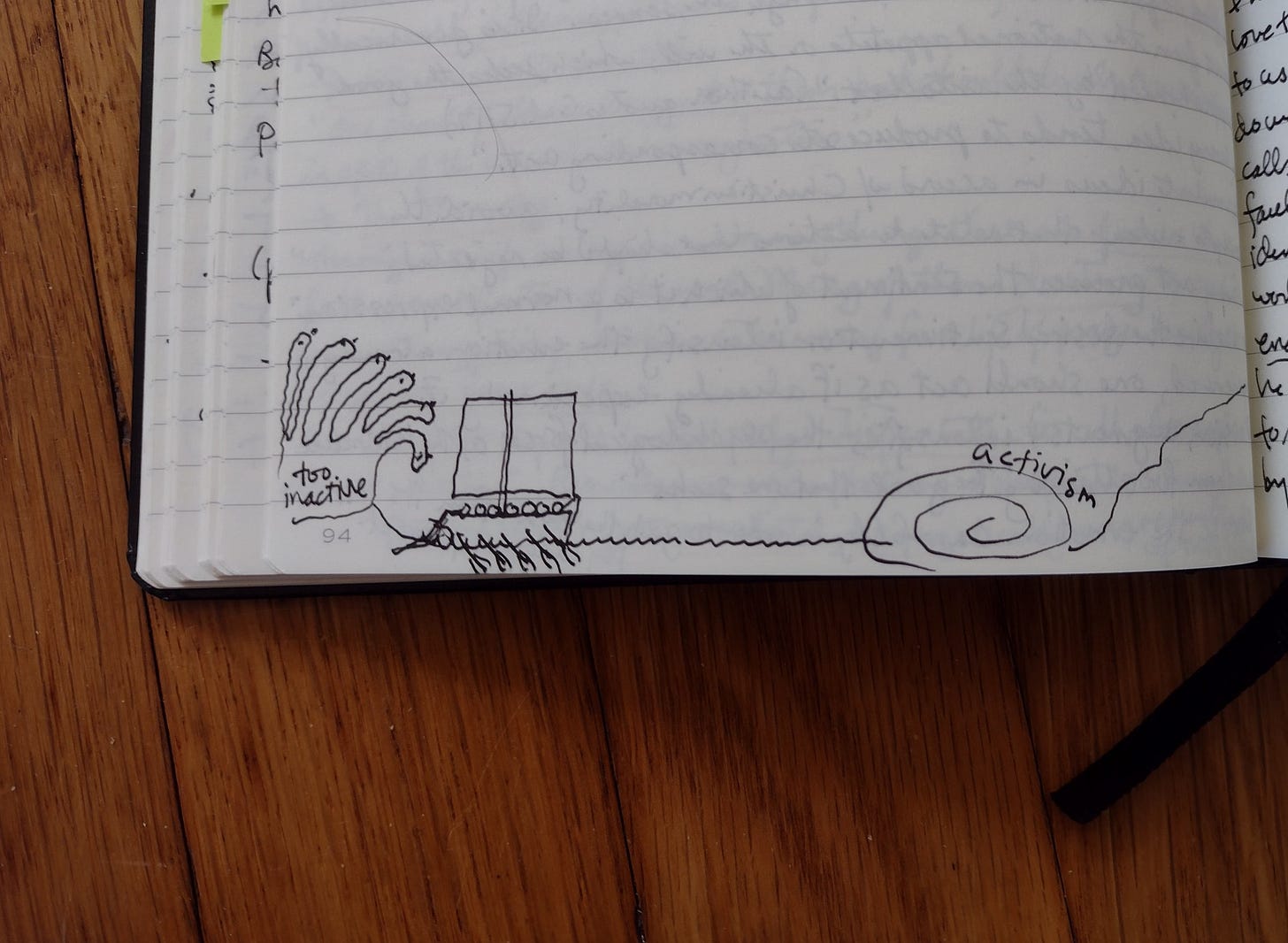 Sunday 2/23 - readings https://bible.usccb.org/bible/readings/022325.cfm “... for the measure w/ which you measure will be measured out to you.” [Here I drew Scylla + Charybdis before Mass as a reminder to myself. The ship is not running aground, but rather I did not think it would look like a ship if I did not draw it from the side.]